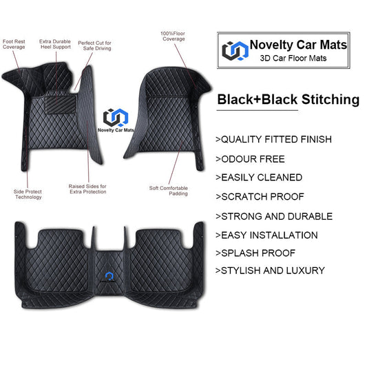 CM07 Luxury Car Mat Diamond Shape Stitchingh Black&Black