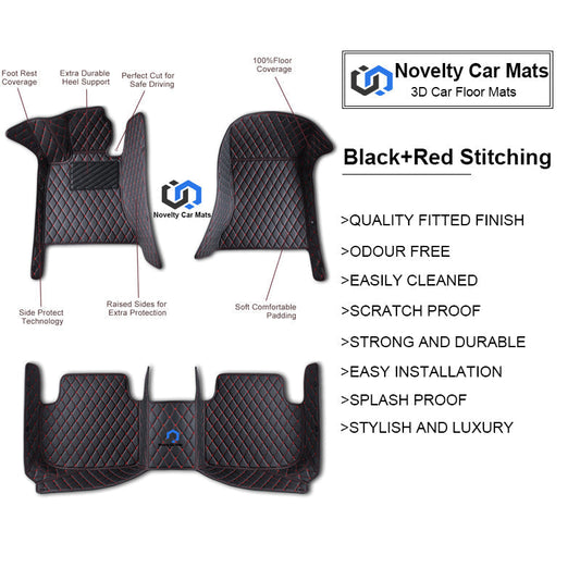 CM08 Luxury Car Mat Diamond Shape Stitchingh Black&Red