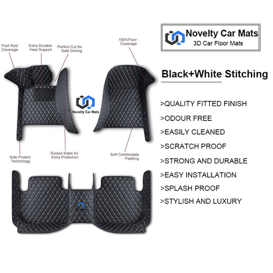 CM21 Luxury Car Mat Diamond Shape Stitchingh Black&White